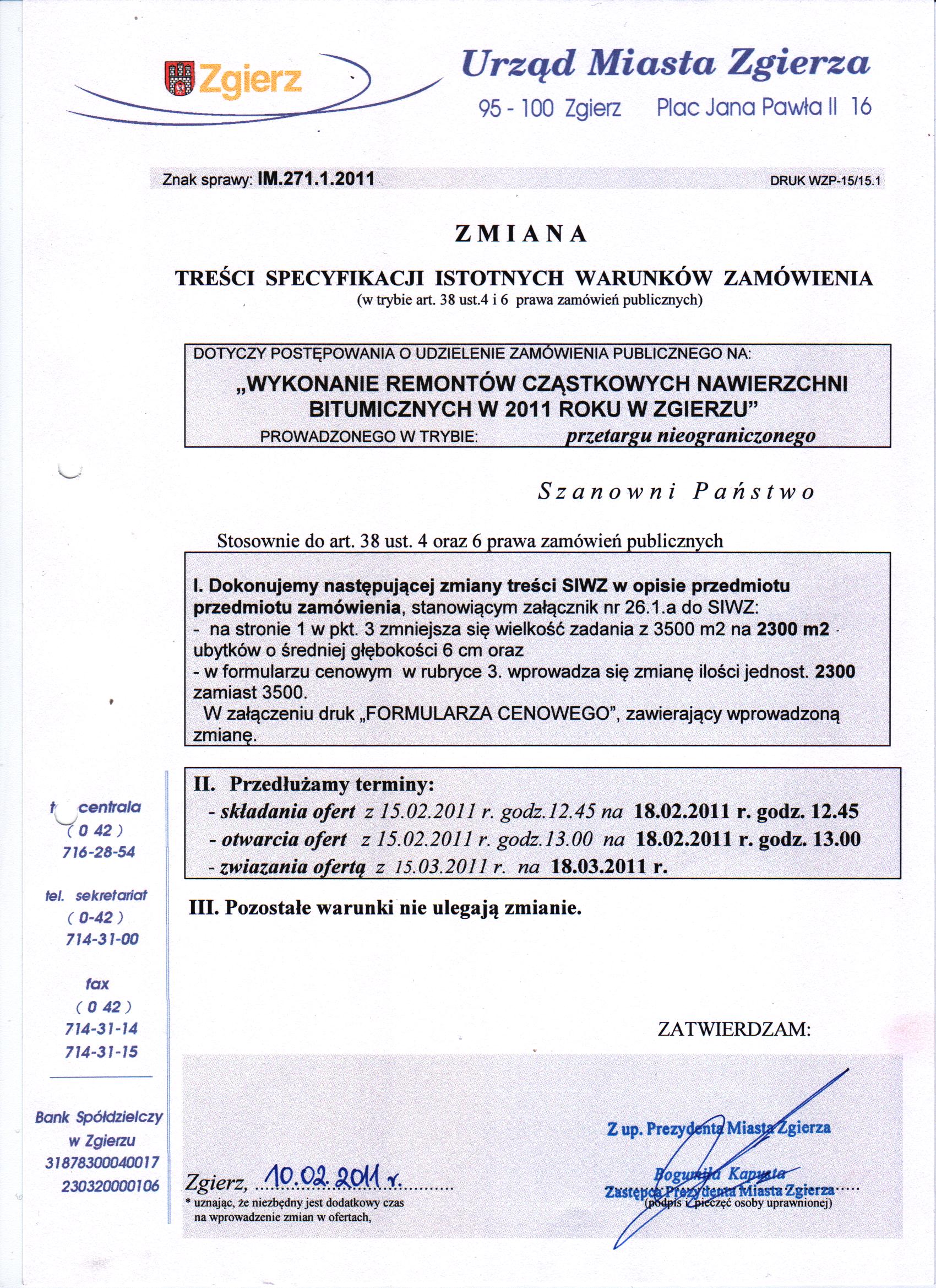 Zmiana terminu składania ofert, zmiana treści SIWZ